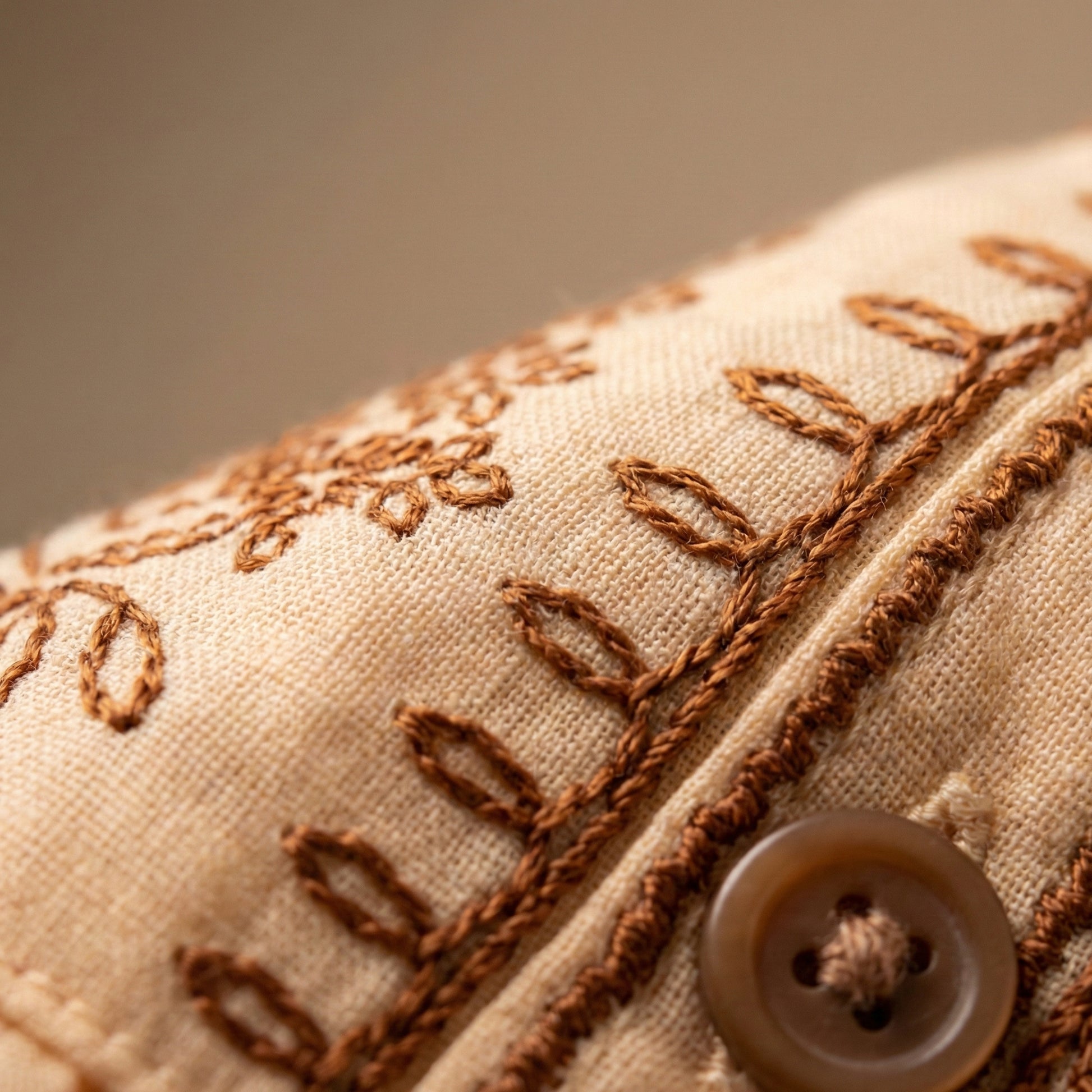 Care Instructions: Dry clean recommended for best results to preserve embroidery. If hand washing, use cold water and gentle detergent. Hang to dry away from direct sunlight. Iron on low heat with a pressing cloth to protect embroidered areas.